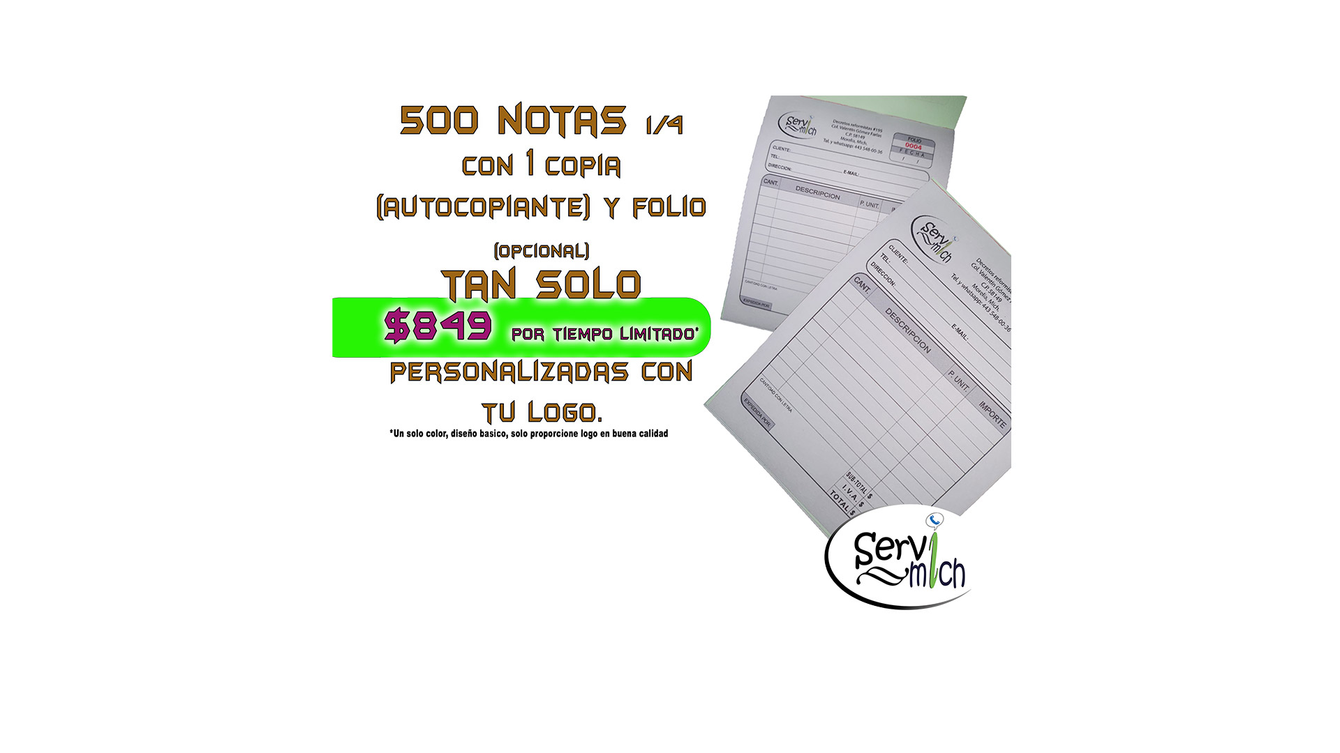 Notas de 1/4 con 1 copia (autocopiante)