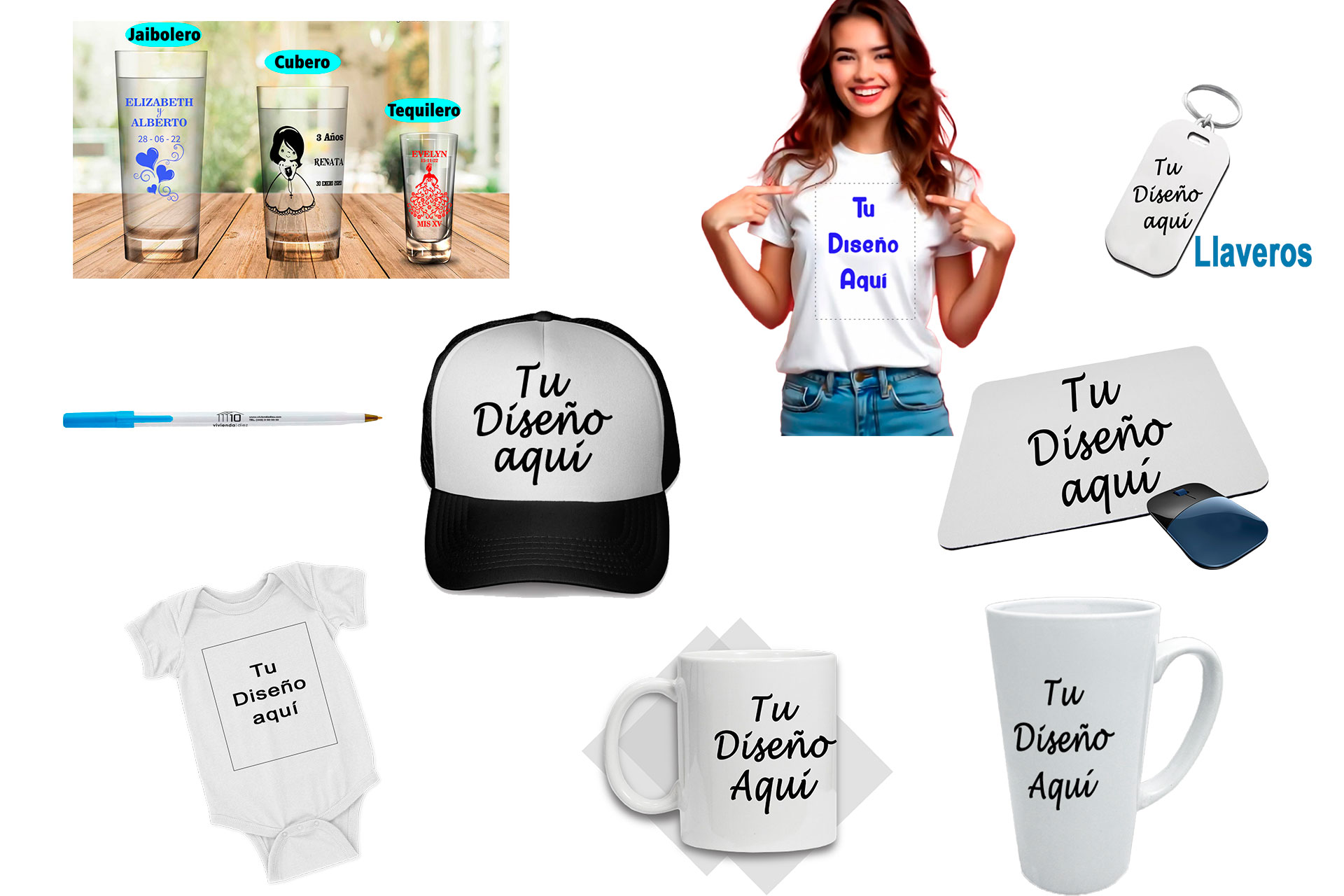 Playeras con tu diseño o imagen favorita, tazas, gorras, cilindros, vasos entre muchas cosas más.