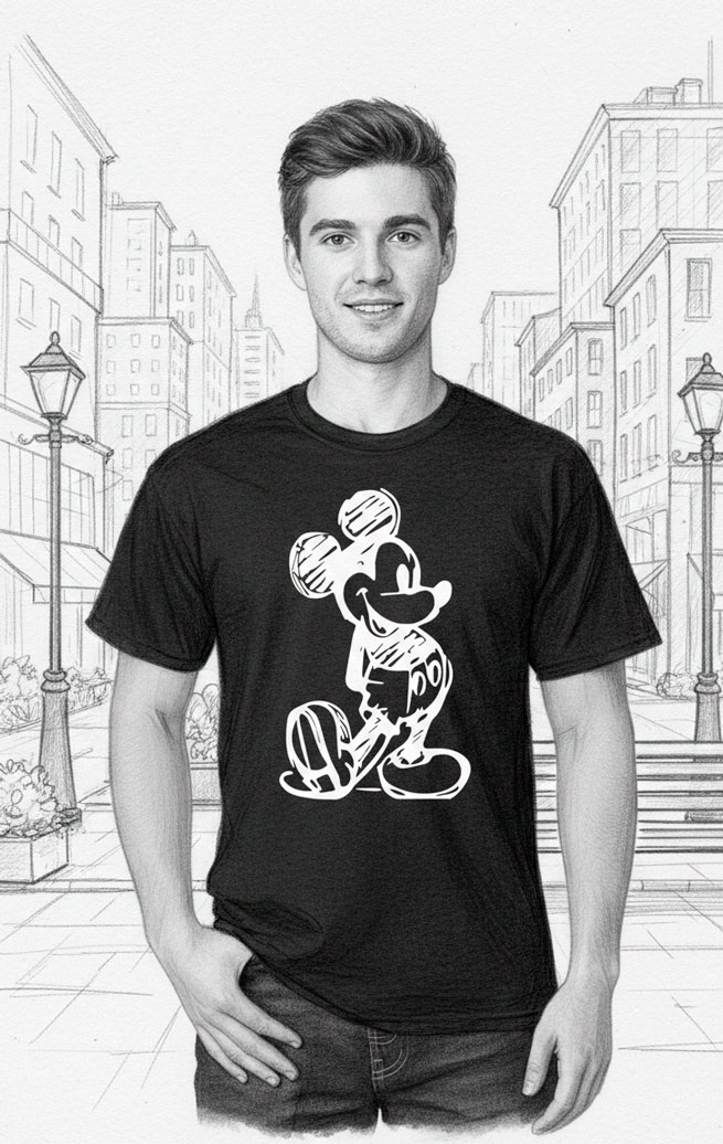 Playera con el estilo Mickey a lápiz, tenemos para dama, caballero, niños o bebés. Seleccione de acuerdo la opción requerida.